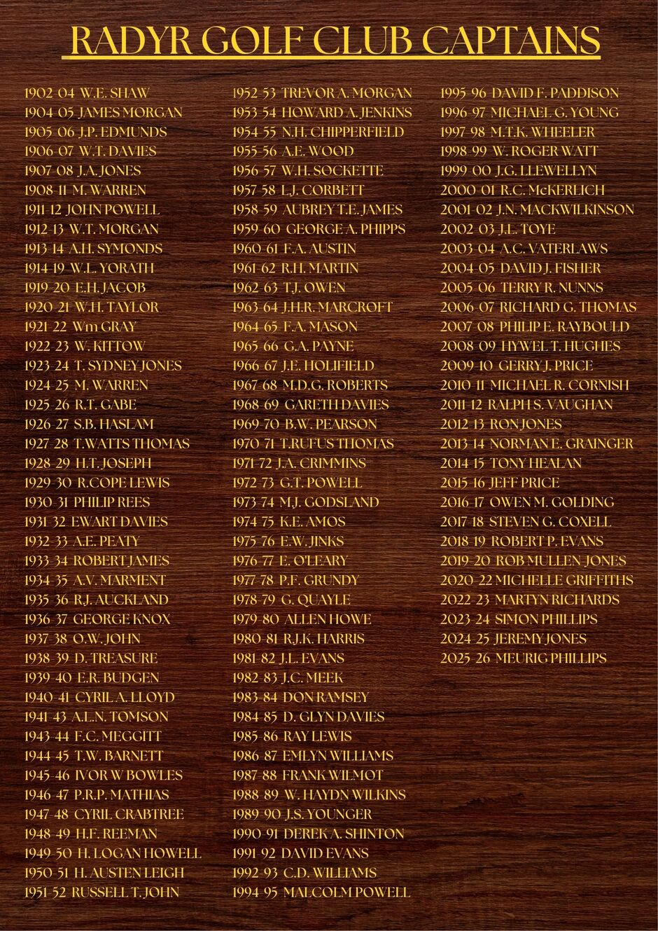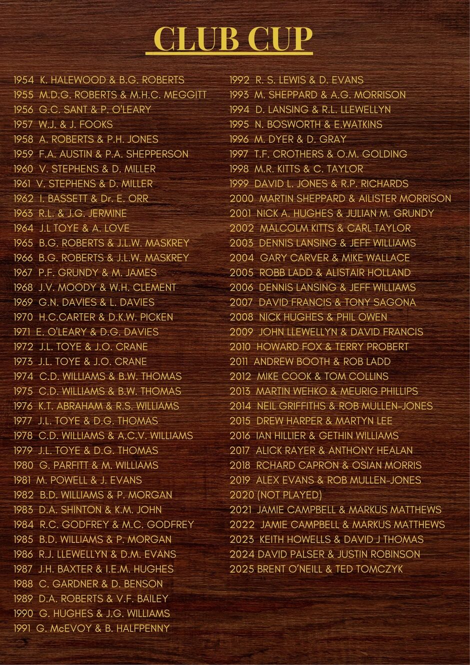 A rich history of names can be found on our honours boards, which are also displayed in our clubhouse.