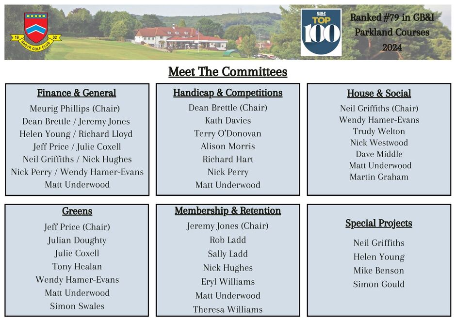If you have any questions for committee members these should be directed to manager@radyrgolf.co.uk